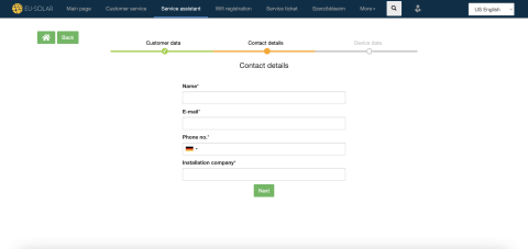 Sie können sich bei der Serviceassistenten-Dienstleistung unter https://portal.eu-solar.hu/ eine Registrierung durchführen: